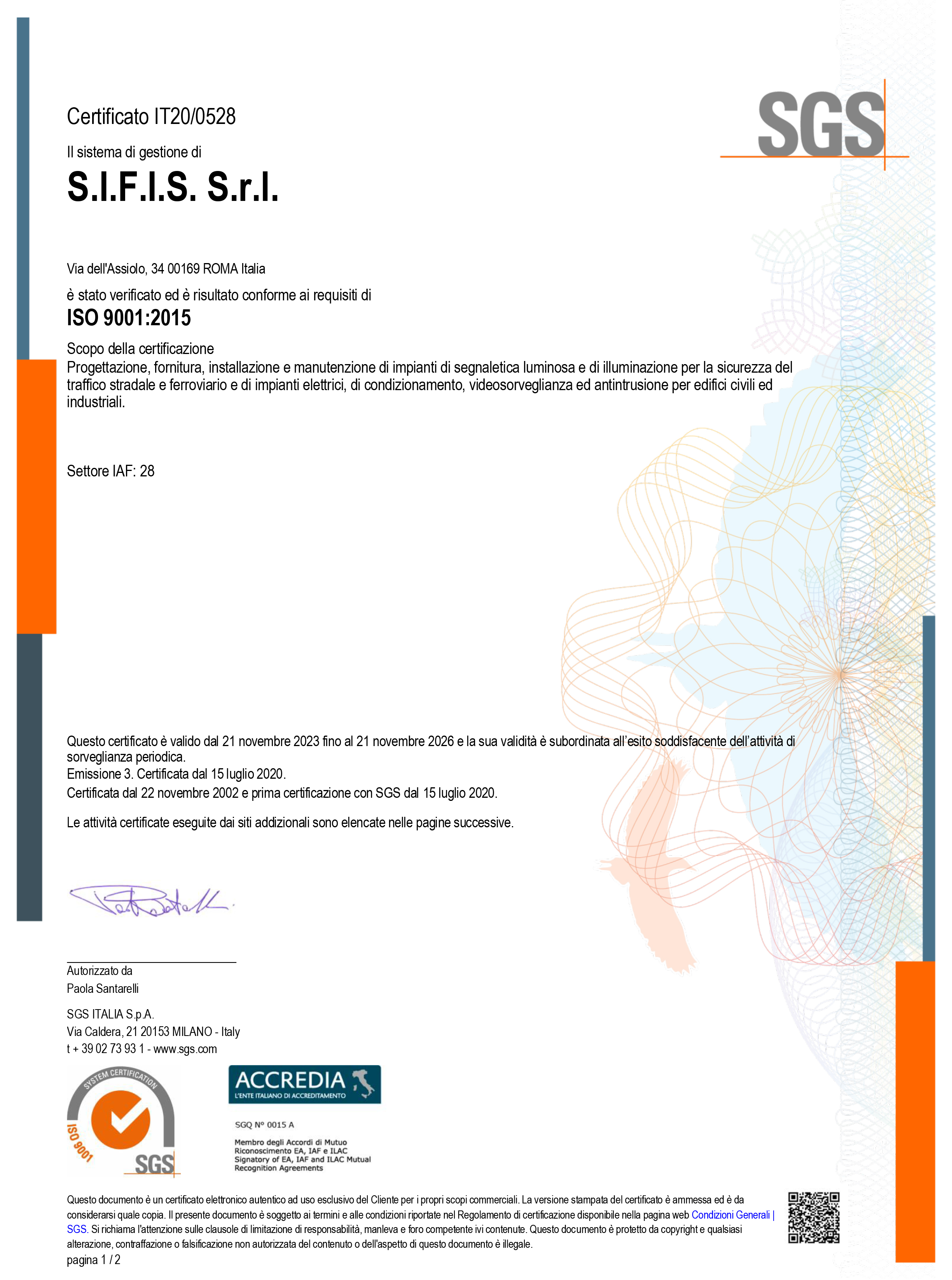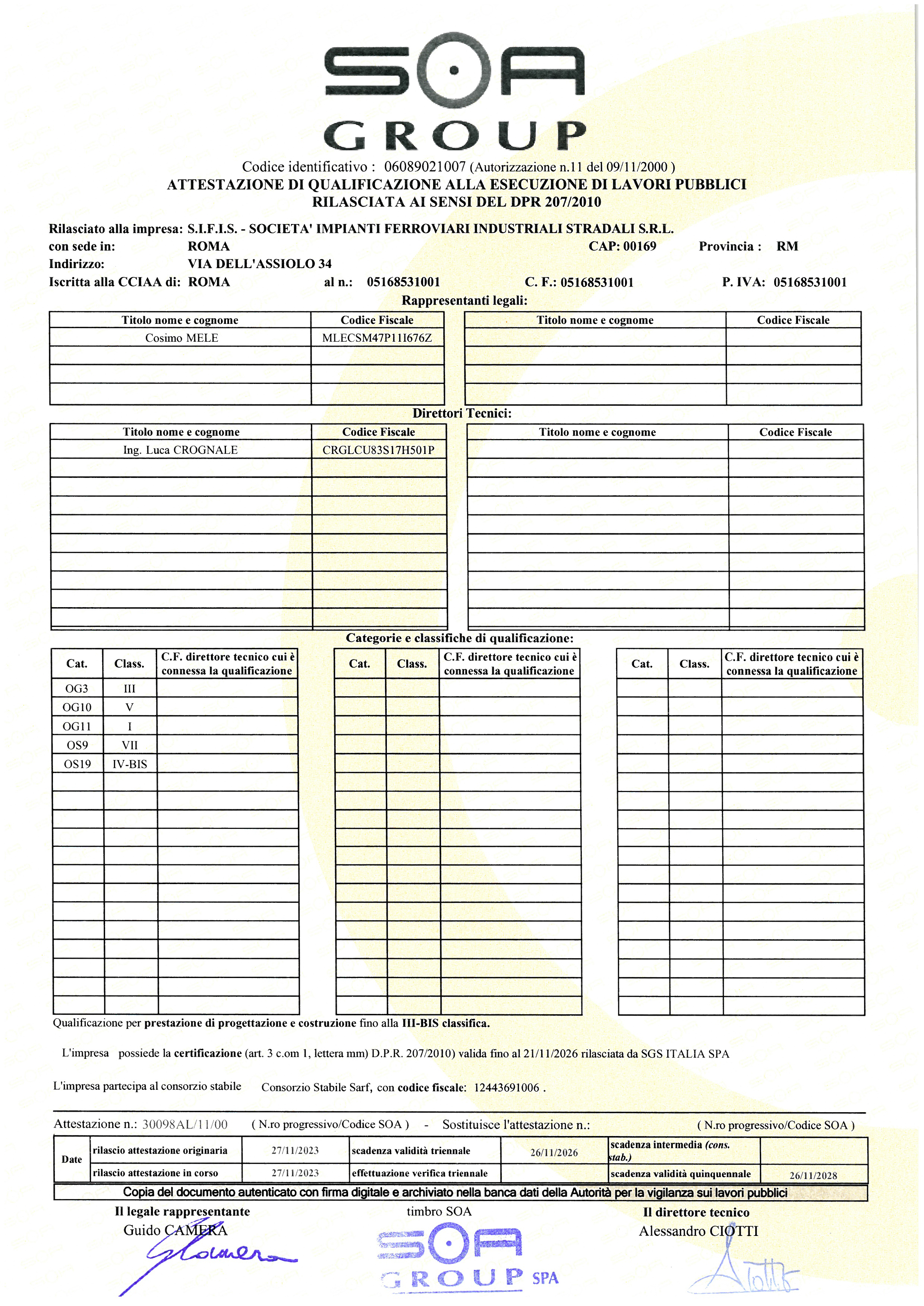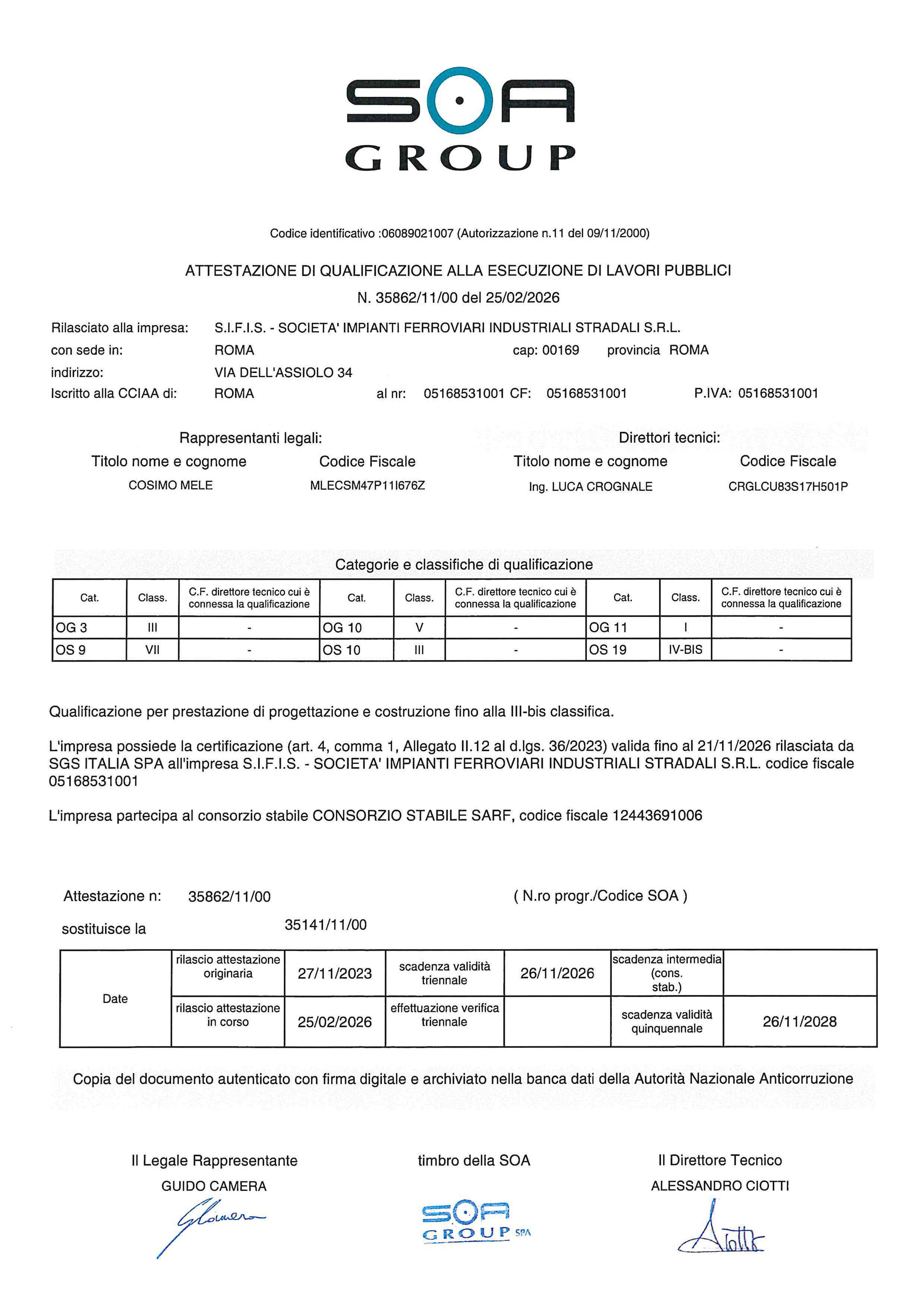 La Società è inoltre certificata SOA per le categorie: