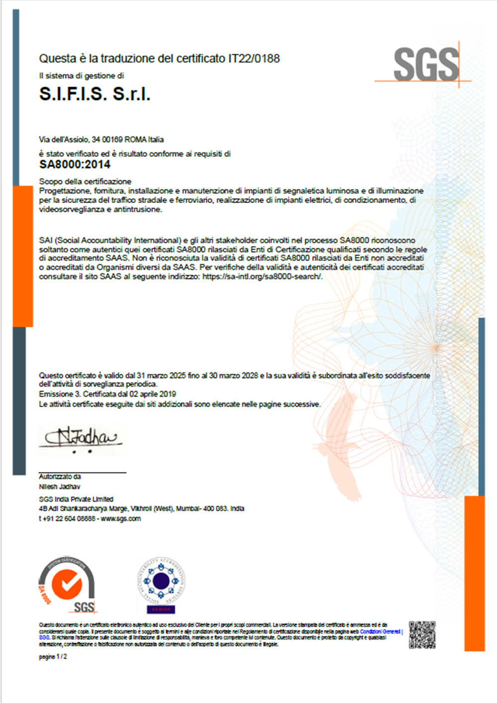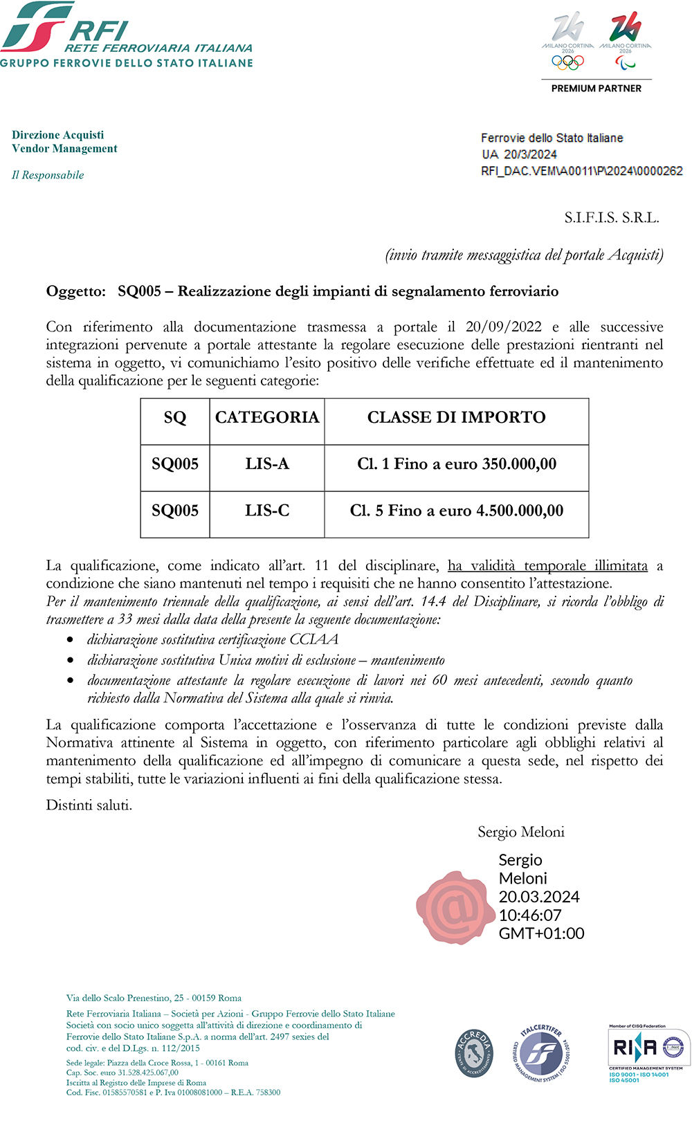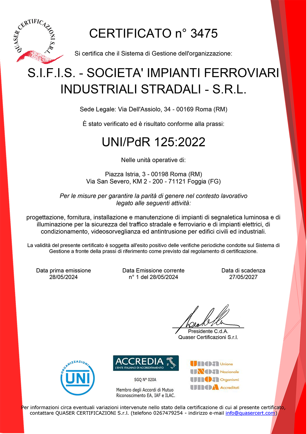 La Società è inoltre certificata SOA per le categorie: